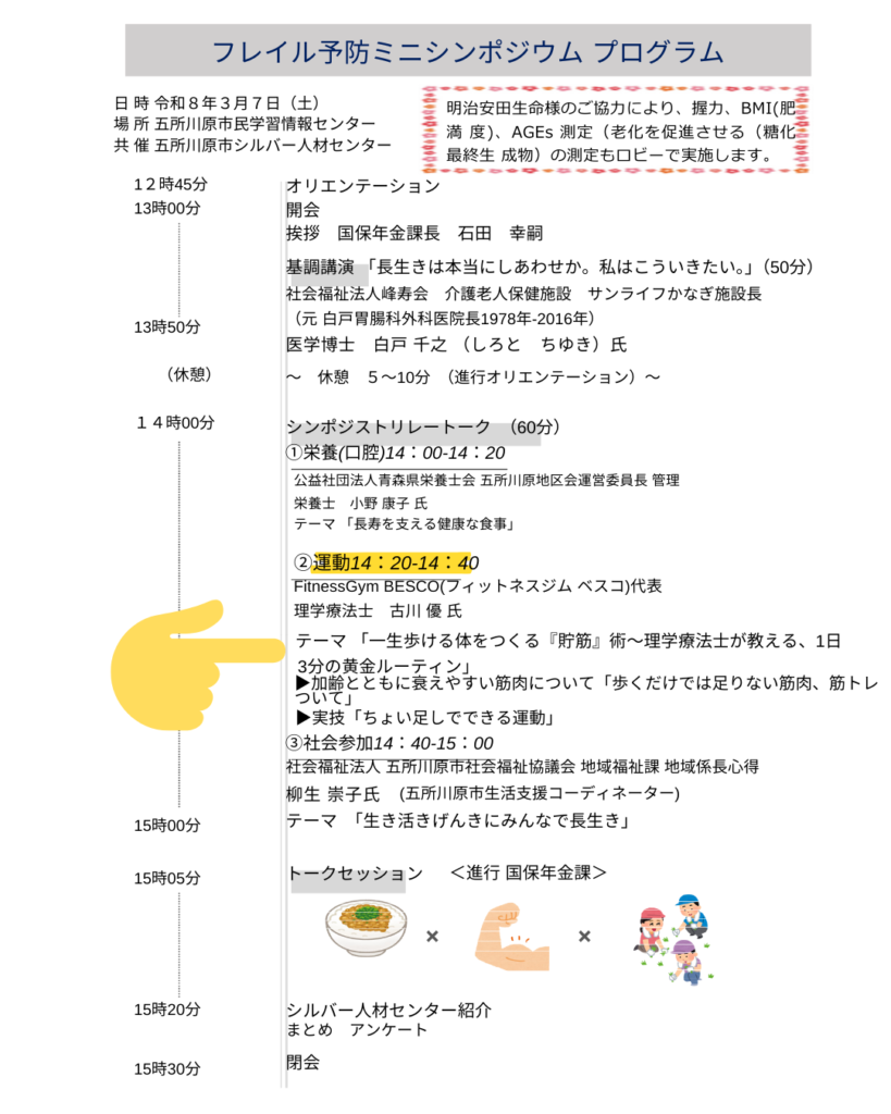 このたび、3月7日(土)五所川原市主催の「フレイル予防シンポジウム」にて、講師を務めさせていただくことになりました。